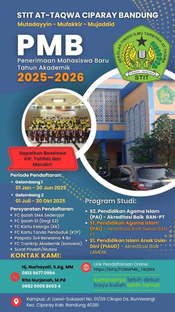 Dibuka pendaftaran mahasiswa baru STIT ATTAQWA CIPARAY BANDUNG , Prodi S2.PAI, S1.PAI dan S1.PIAUD